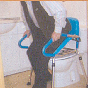 Jsou to křesla s nadstavbovými prvky. Křeslo na obrázku je velmi vhodné pro nácvik vstávání a nebo pro lepší vstávání. Díky speciálně upraveným područkám se pacientovi velmi dobře vstává. Stačí se jen lehce přidržet protiskluzových područek a celé prkýnko se plynule zvedne.